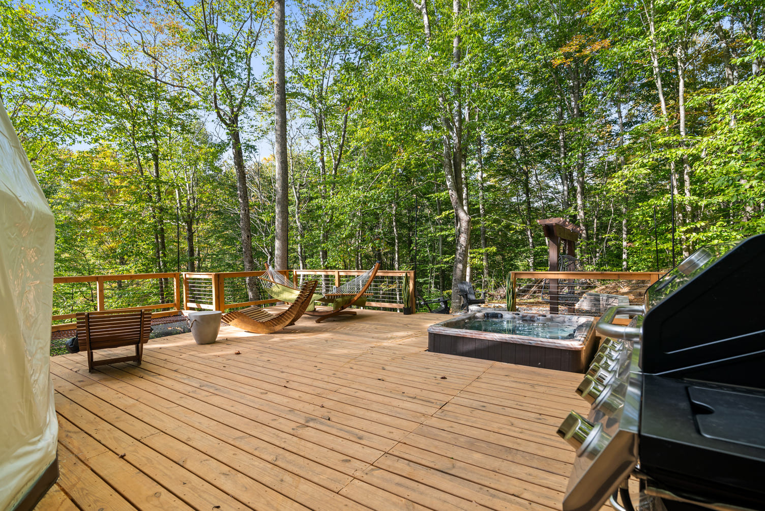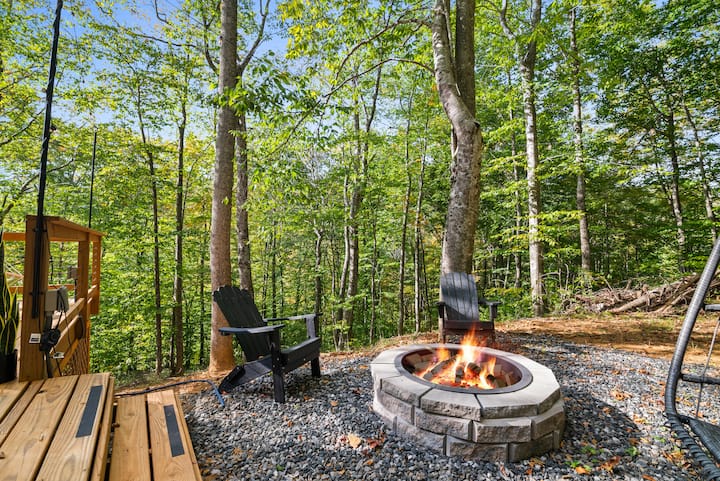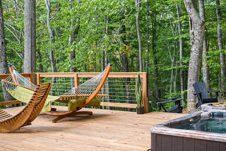 Relax on the wooden deck, soak in the hot tub, or stargaze by the fire pit — your private escape awaits.